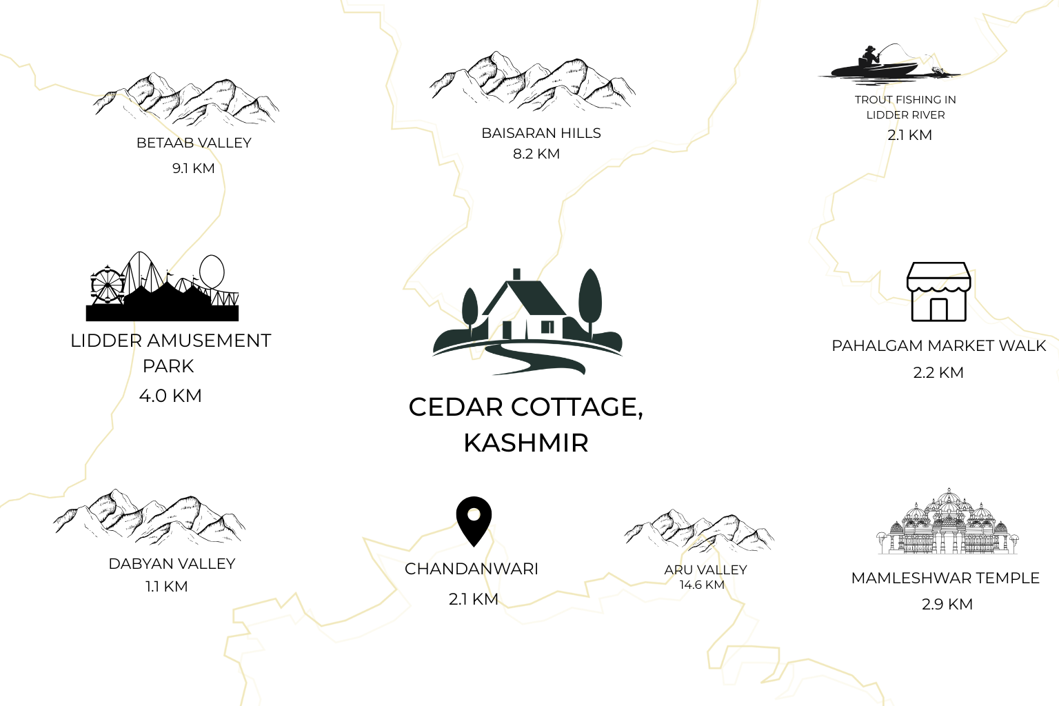 • Peaceful Location, Prime Access: A tranquil retreat just minutes from Pahalgam’s most scenic destinations and local culture.