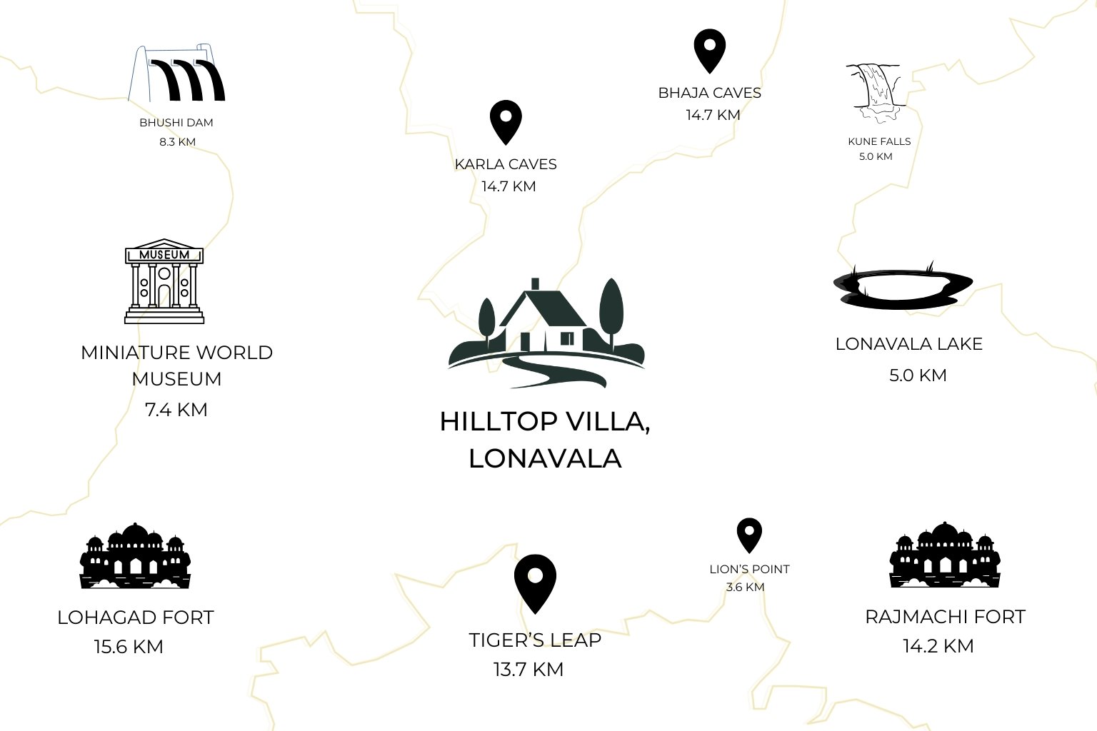 Secluded Yet Convenient Location : Perched on a hilltop, the villa combines privacy and easy access to Lonavala’s popular spots.