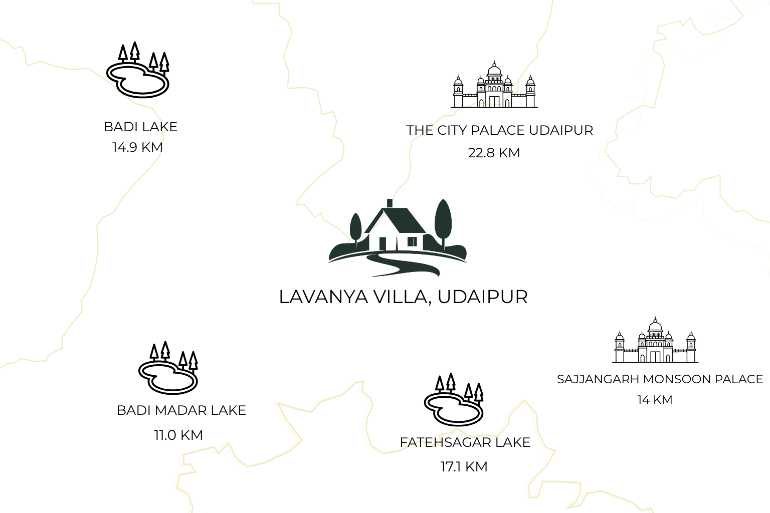 While offering complete privacy and tranquility, Lavanya Villa is conveniently located near Udaipur’s most loved attractions: