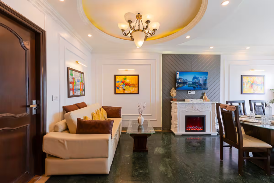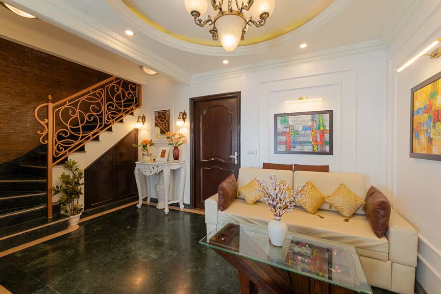 Step inside SD Cottage and discover the effortless elegance of a thoughtfully designed mountain home. The interiors are a beautiful blend of natural textures, warm wooden accents, and soft lighting that creates a soothing ambience. Every corner feels inviting — from the cozy lounge with its plush seating to the large picture windows framing the majestic Doon Valley.