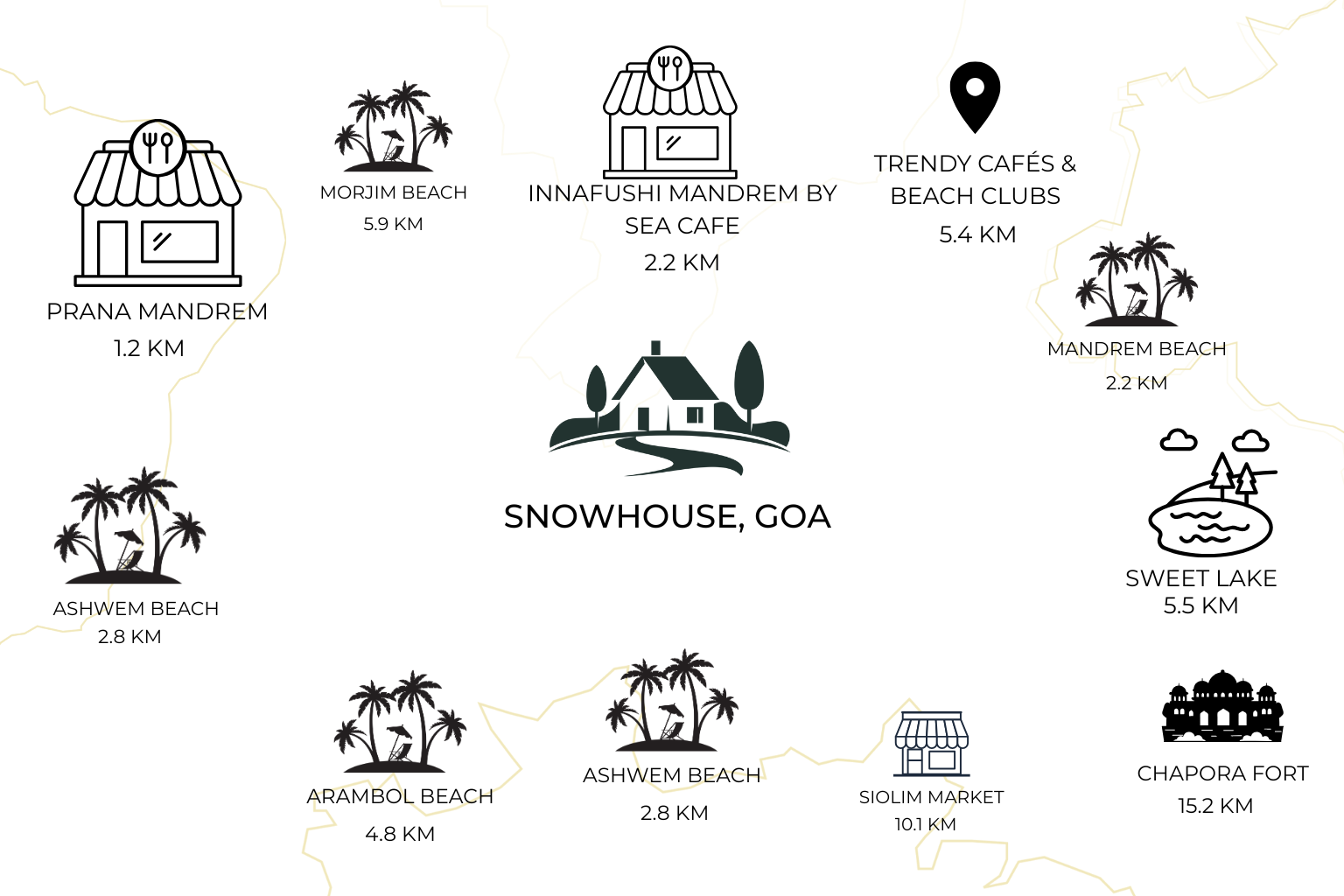 • Prime North Goa Location : Just minutes from Mandrem, Ashwem, Morjim, Arambol, Siolim, and stylish cafés & beach clubs.