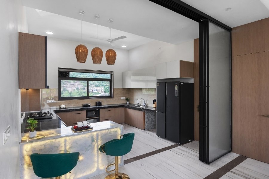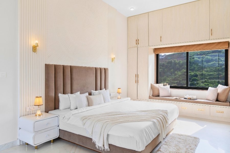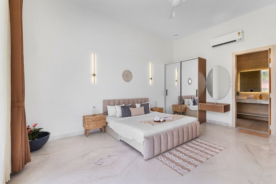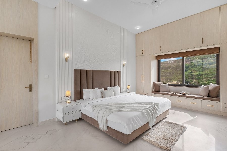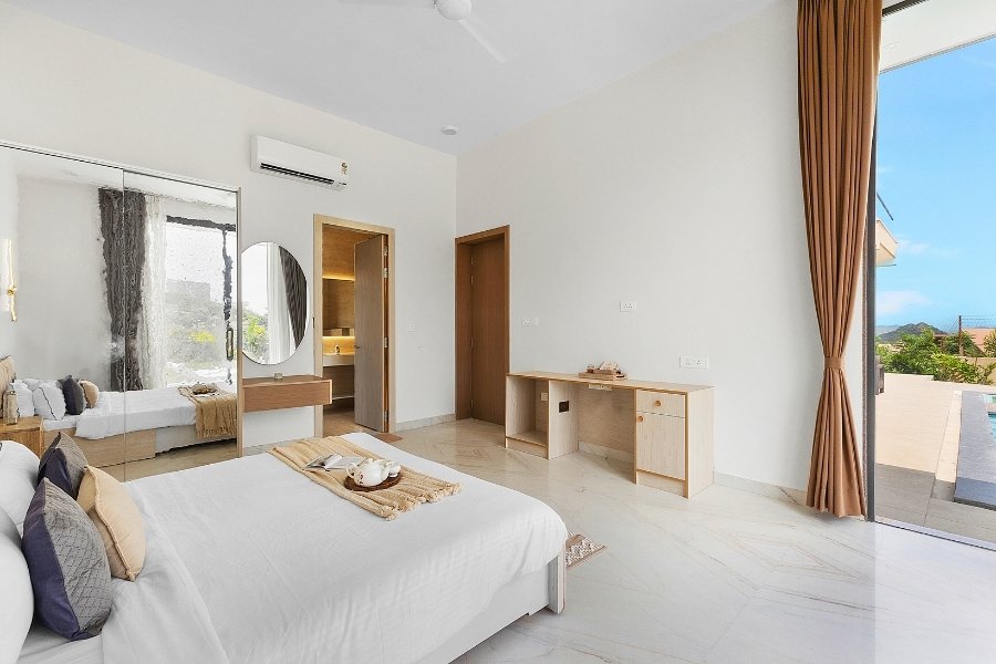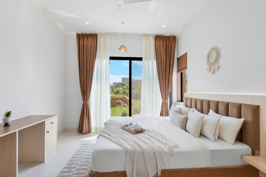 Villa Sierra is a thoughtfully designed 4 BHK private villa in Udaipur, blending contemporary elegance with warm, understated charm. The villa features spacious interiors, soothing décor, and large windows that invite natural light and views of the outdoors into every space.