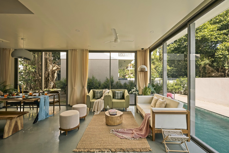 Most people today travel with family or friends but still feel disconnected due to gadgets and distractions. Villas change that dynamic. Shared open spaces, community-style seating, bonfire pits, and game zones encourage real conversations, laughter, and presence. You start behaving differently, you talk more, listen more, notice more.